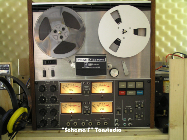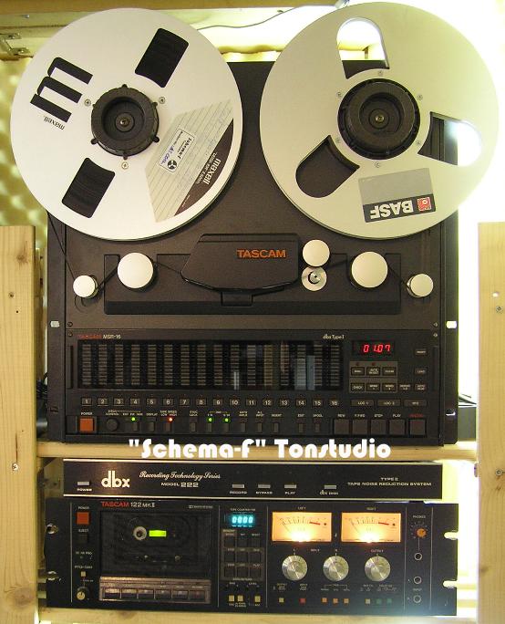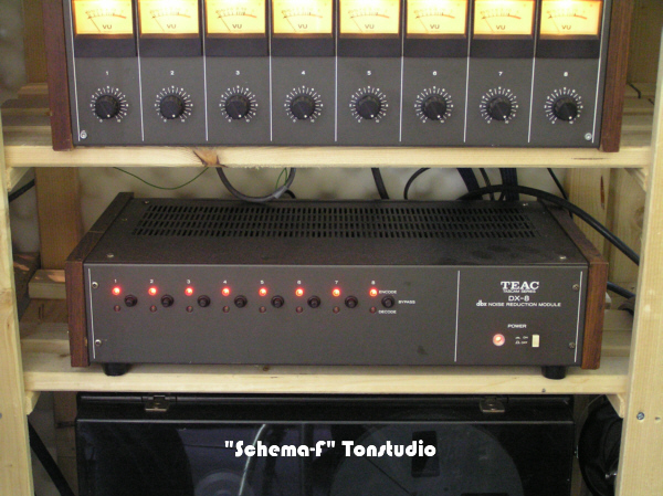 Das ist die ältere Mehrspurbandmaschine des Studios, eine TEAC-Tascam 80-8 mit passender 8-Kanal Rauschunterdrückungseinheit DX-8 (siehe